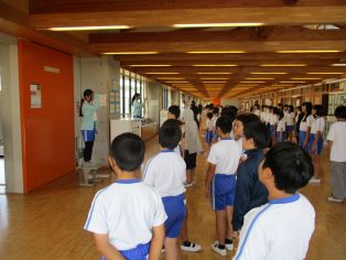 先週から延期していた避難訓練を実施しました。今回の訓練では、4〜6年生が教室以外の場所から避難をしましたが、整然と速やかに行うことができました。 |