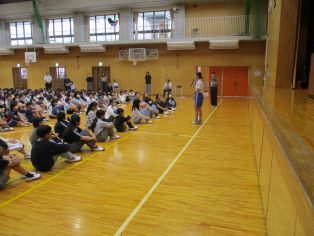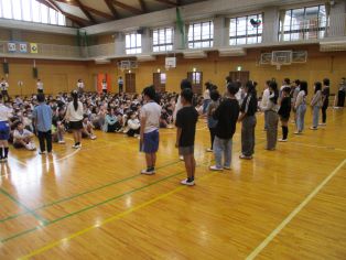 | 後期の始業式を行いました。5年生の代表が後期にがんばりたいことを発表しました。後期の学級委員、委員長・副委員長の任命を行いました。集会の中で、自分の目標を伝えあい、後期に向けての意欲を高める機会になりました。 |