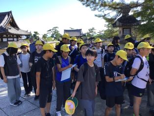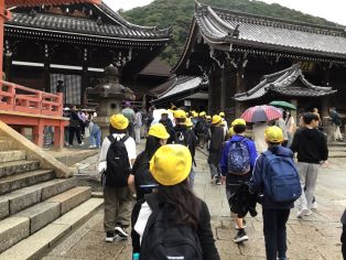 | 清水寺に到着し、きれいな景色や歴史を感じる建物に目を輝かせました。このあと、清水坂で買い物をして、タクシーでの班別研修に全班出発していきました。 |