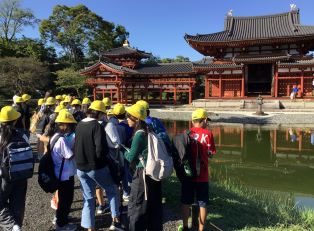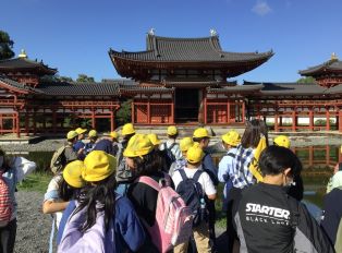 | 平等院に到着しました。晴天の中、歴史的な建造物の美しさを肌で感じることができました。 |