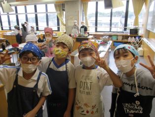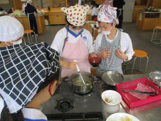 | 5年生が家庭科の授業で、調理実習を行いました。グループで役割分担をしながら、ご飯と味噌汁を作り、おいしくいただくことができました。 |