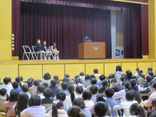 | 合唱フェスティバルを行いました。どの学年も台詞は大きな声で、歌は体を揺らしながら気持ちの入った発表をしました。保護者の方々もたくさん参観していただき、ありがとうございました。 |