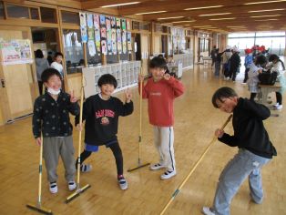 | 明日の合唱フェスティバルに向けて、6年生が一生懸命に準備をしました。全校のため、明日来てくださる方のために進んで取り組む姿に、最高学年としての頼もしさを感じました。一方、そんな6年生を支える5年生も6年生に向けて活動しています。昇降口で靴をきれいに揃えたり、雨が降ってきたらすばやく旗をしまったりと学校のために行動しています。 |