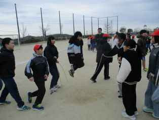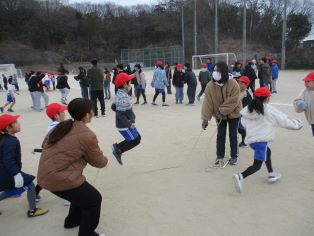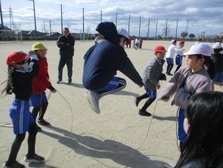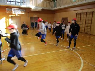 | 1月27日の大なわとび大会に向けて、どの学年も練習に取り組んでいます。クラスで声をかけながら、3分間でよりたくさん跳べるように工夫をしています。 |