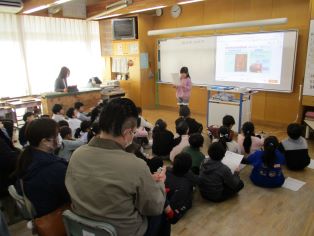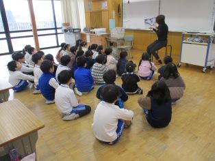 | 読み語りがありました。読み聞かせを集中して聞きながら、絵本の世界に入っているような姿が印象的でした。ときより、歓声が上がるクラスもありました。 |