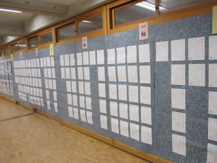 | 書き初め展示をスタートしました。20、21日は9:00〜16:30、22日は9:00〜15:30に多目的室に展示してありますので、お時間がありましたら来校していただき、お子さんの書き初めをご覧になってください。 |