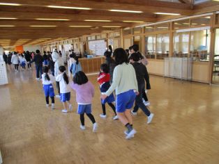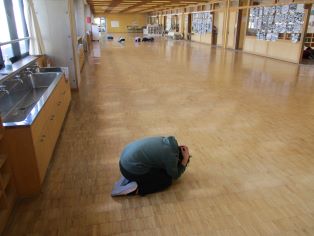 | 避難訓練を行いました。今回の訓練では、そうじの時間に地震が発生することを想定して行いました。5・6年生が自分たちだけでなく、まわりを気にかけながら避難する姿が見られました。 |