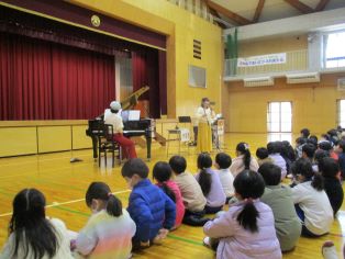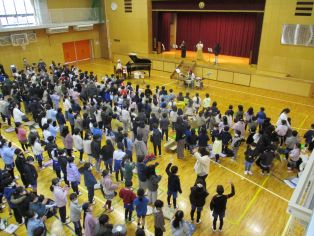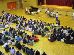 | 音楽鑑賞会を行いました。クピパトリオが来校し、音楽の楽しさを伝えてくださいました。全校でリズムに乗りながら体を動かして楽しさを実感することができました。 |