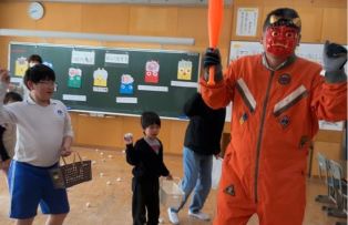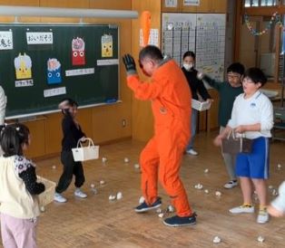 | 今日は節分でした。特別支援学級では、豆まきを行いました。教室に大きな鬼が来たので、豆をまいて退治しました。今年もよい年になりそうです。 |