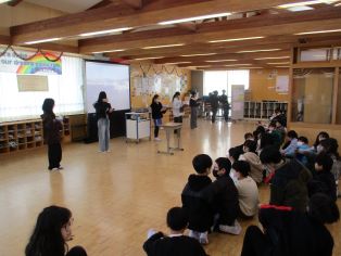 | 冬休み明け集会を行いました。代表児童が、4月からがんばってきたことを踏まえて、今年の抱負を発表しました。その後の教室では、久しぶりに会えた友だちと冬休みの思い出を楽しそうに話をする姿が見られました。 |