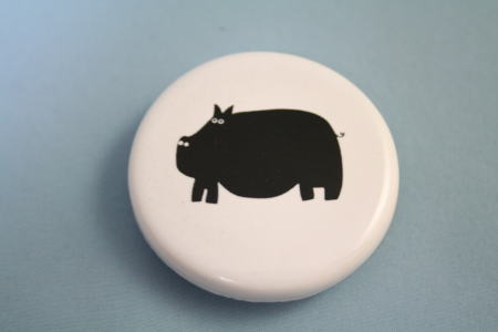 裏にマグネットがついた紙留め。直径4.5pの白地の円に黒いカバがくっきりと描かれている。イタリア製。