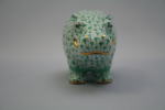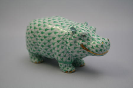 独特の模様が美しいカバがいる。iPADで拡大して見ると、鯉幟のウロコを近くで見るような感じ。耳、目、顔、胴の造形が、リアリティをもちながら抽象化されている。金色の線で口がキュッと閉じられている。