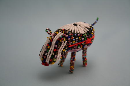 デパートの一角にあるアジア・アフリカグッズの店で、ゆっくり一回りしてから、「カバはいませんか」と聞いた。その時はいなかったが、数ヶ月後にフラリと立ち寄ると、店主に顔を覚えられていた。一角にカバコーナーがあってたくさんのカバがいて驚いた。これはその中の一つ。きれいな色のビーズ製。「ビーズは手間がかかるから高い」とのこと。配色が、アフリカ的と感じた。