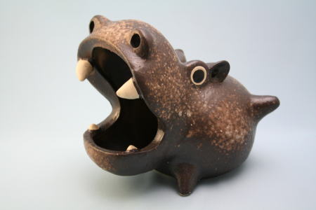 今年は雨が多いが、夏は蚊取り線香の季節。蚊取り線香立てはブタのものが多いが、これはカバ。口の中にちょうど蚊取り線香を立てるスペースがある。信楽焼。鼻、耳に穴があいていて、煙が出るようになっている。