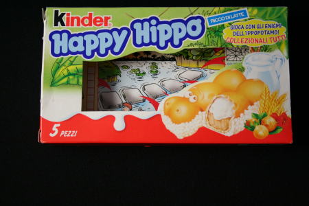 イタリアへの新婚旅行のおみやげ。しばらく前にいただいた。当時、カバのコレクションはしていたが、まさか自分がホームページを作るとはまったく思っていなかった。そのため、中身をおいしくいただいてしまい、箱だけが取ってあった。お菓子の中身は、箱の右下の絵の通りでした、としか言いようがない。今なら、中身をしっかりカメラに納め、どんなふうにおいしいかということも、メモしておくのだが、当時は「コレクター魂」が足りなかった。