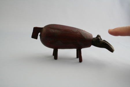 くりぬかれた木の中にカバの顔があり、首を振る。どう呼ぶかと聞いてみたら、「うなづきカバ」とのこと。ほとんどの人が値切っていたので、日本語と英語を混ぜて値切った。