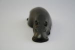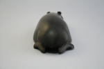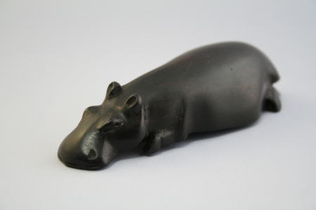 黒檀製。真っ黒でつやがある。曲線がなめらかで美しい。よく見ると、体の下半分が省略されている。足もとても小さい。水の中に体の下半分が隠れているのか、あるいは省略の美か。「大きなお寺のバザーにいた」とのこと。お寺の雰囲気にマッチして違和感がないカバだと思う。