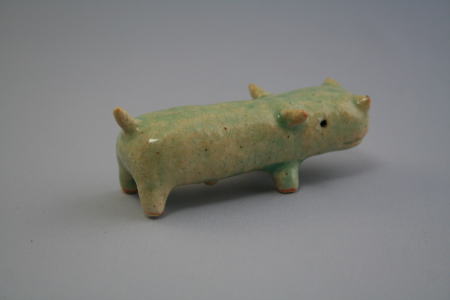 「カバのハニワ」と呼べると思う。作者はまず、じっくりとカバを観察したり、資料を集めたりしたのだろう。しかしその後は、それらを忘れて、粘土に向かって、ひたすら余分な部分を削り続けたように思われる。