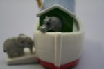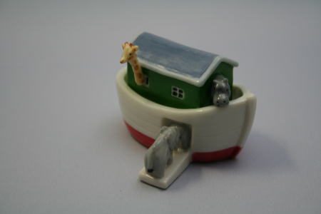 紙箱にだけ、Noah's Ark と書かれていた。ノアの箱舟にキリン、象、カバが乗っているところらしい。小さいが、しっかりとした磁器で作られていて、色がきれい。