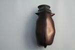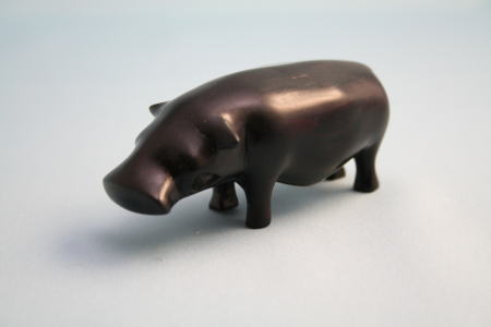 私が、かつてずいぶんお世話になった大先輩のK先生の奥様からの頂き物。K先生がお亡くなりになった後、奥様がK先生の未完のお仕事をまとめたいとの思いから、私の所にも訪ねてこられた。2度目にこられた時、笑顔で紙包みを置いて行かれた。その中にこのカバがいた。カバの話はまったくしなかったのに、私の部屋にいたカバを見られたからだろう。