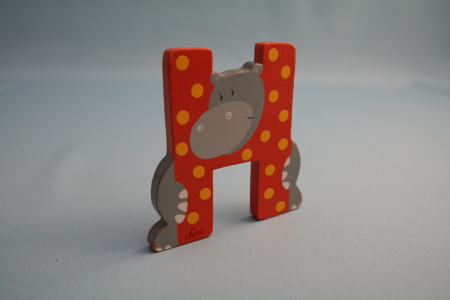 Hという文字に寄りかかり、カバが顔を出している。子供が文字を覚えるための積み木のひとつ。HippoだからHなのだろう。文字の直線とカバの丸さの対比がおもしろい。