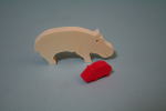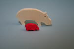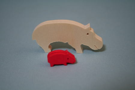 デパートの一角に、輸入の木製人形コーナーがあった。そこには、 いくつかの木製のカバがいたが、すでに持っているものが多かった。しかし、このカバは、初めて見た。生まれたばかりのカバの親子を描いているのだろうか。