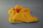 表がブルーのカバで、裏が黄色のヒヨコ。手に持って、一瞬のうちにひっくり返すと、カバがヒヨコになり、ヒヨコがカバに変身する。肌触りが柔らかで、ヒヨコの色がとてもきれい。
