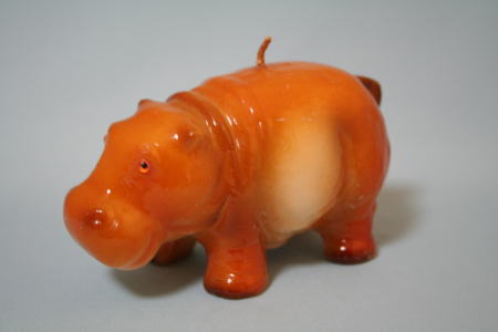 横浜のイタリアものの輸入店の一角にシチリア島の蜜蝋製のカバがいた。大きさはヒヨコくらい。色がきれい。蜜蝋は、ミツバチの巣100%でできたもので、加熱し、圧縮して作られたものとのこと。店主と話が盛り上がった。