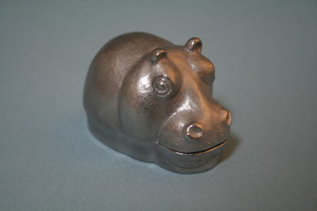 村中保彦作。カバの香合(香料を入れる蓋付き容器)。ステンレス。5p。