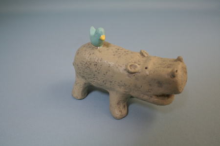 のんびりしたカバの背中に青い小鳥。この組み合わせは、カバグッズ界の定番の一つだが、見ていてとても安心する組み合わせだ。