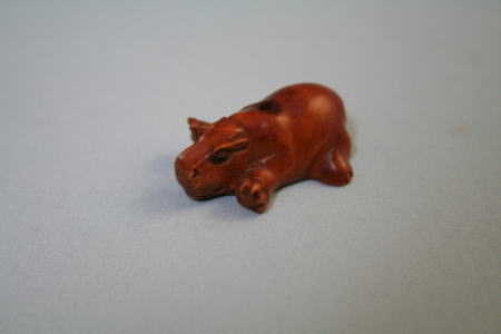 骨董店が並んだモールの中の、ヨーロッパの陶器が並んだお店で、 カバの話をしていたら、隣の店から「カバがあるよ」と声がかかった。小さな根付で、山のようになっているいろいろな動物の中から、見つけてもらったとのこと。小さなカバが、腹ばいになっているよう。目がきれい。