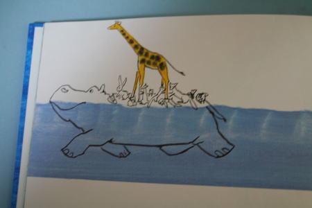 「かばくん」シリーズの絵本。「カバより大きな雲があらわれ、動物園が洪水に。「のせてくれ かばくん」と、色々な動物の子どもが、カバの船に乗って助けられる。天気になると、カバの親子はねむくなって横になる」というお話。カバの絵がかわいい。ちょっと、ノアの箱船を連想した。