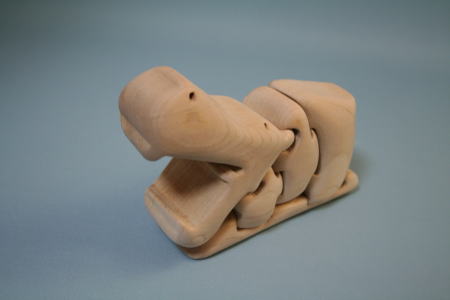 口を大きく開けたかば。4片からなる木のパズル。簡単そうだが、縦長にパズル片を置くことが分からず、しばらくお手上げ状態になってしまった。
