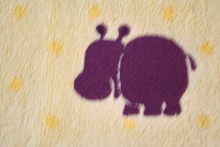 「HIPPOの仲間たち展」で、見つけたカバのオリジナルタオル。紫色が印象的だ。