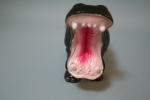 全体の造形は写実的だが、「これでもか」というくらい思いきり口を開いている。プラスチック製。