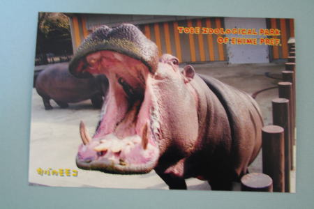 愛媛県立とべ動物園のカバのモモコ。絵葉書。父親ハグラー、母親ミミ。11歳のメス。モモコという名前がかわいい。