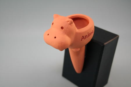ウサギコレクターのKさんによると、「素焼きなので、土にさしておくと水がしみ出るのだと思います。留守をする時の水やりに使う方が多いのだろうと思います」とのこと。「初めは今のようにきれいなお肌のカバでいられるのですが、(略)水を吸い込むことで徐々に表面に白い粉が吹いたようになったり、表面がういてはがれてきてもろくなったりして、美肌ではなく」なってしまうとのこと。
