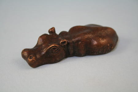 水中のカバ。ブロンズ製。7p。大と小が親子のように並んでいた。これは小。日本にも、このような「水中のカバ」は多くあるが、どこか似ているものが多いと感じていた。これは、顔の表情、胴体の形など、今まで見たことがないものだ。