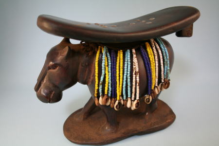 ナイロビのUTAMADUNIというクラフト・センターで見つけた骨董のカバ。上の皿に果物などを盛る、とのこと。時代は分からないが、貝殻の飾りが付き、使いこなされて光っている。アフリカの歴史を感じるカバだ。