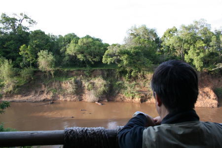 ホテルのベランダのソファーに座って、朝夕、ゆっくりと川の中のカバを眺めた。子カバが一頭いて、親カバの背中に乗っては、滑り落ちる遊びを繰り返していた。鳴き声、水に潜るタイミングなど、カバ同士が交流していることが伝わってきた。「ケニアのカバは、ずいぶん生き生きしているな」「日本のカバは、狭い空間で窮屈な思いをしているのだな」ということを強く思った。