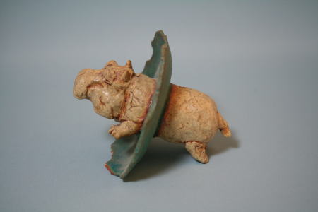 三重県名張市で開かれていた作陶展におじゃました。古い街道に面した日本家屋の素敵なギャラリーに、ネコ、シロクマなどに混じって何頭ものカバがいた。ほとんどのカバに売約済みのシールが貼られていた。残念そうな顔をしていたためか、初期の作品の展示コーナーから一つ譲っていただくことができた。