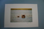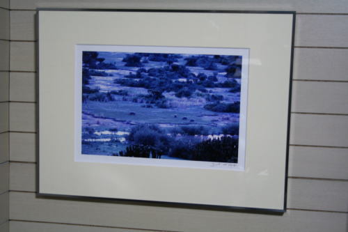 ズームで撮ったものに混じって、一枚、遠景の中のカバの写真があった。なぜか心ひかれ、後日、同じものを譲っていただくことができた。この写真を眺めていると、アフリカの空気の中にいるような感じがして、深呼吸したくなる。(下の3枚は、展覧会場売店にて)