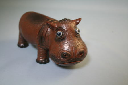 こちらは、鈴木義美さん作の親子カバの子ども。写真に撮ると大小が分からないが、親と比べるとずいぶん小さい。