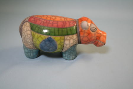 説明書によると、「それぞれの部分が日本の楽焼きの方法で彩色され、焼かれ、合わせられている」とのこと。このカバの親しみやすさは、日本の技術に由来していたようだ。ヨーロッパ人好みのジャポニズムがアフリカにまで伝わっていることに驚いた。