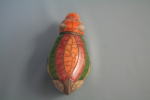 南アフリカ。楽焼き。透明感のある淡い朱色、緑、ブルーなどが組み合わされ、落ち着いた感じ。