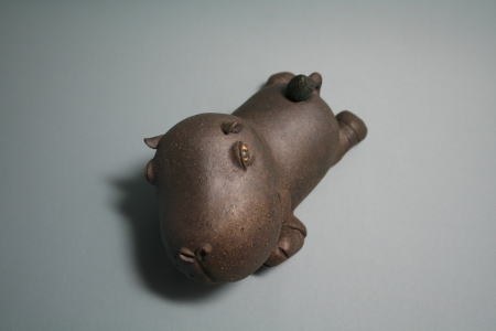 寝そべったカバの陶器。全体に漫画的で、顔、胴体などの描写が丸くなっている。18p。