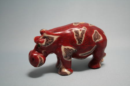 南アフリカ製のカバ。一見、石に見えたり、あるいはチョコレートにも見えるが、ろうそくとして作られたもの。色が鮮やか。