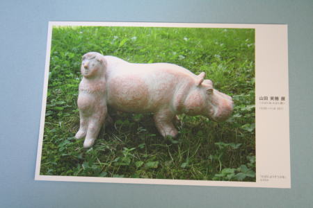 カバ作家の山田実穂さんから、写真と以下の文章の入った個展案内葉書をいただいた。