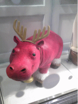 ◇大阪。トナカイの角をつけたカバ。