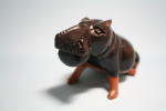 黒と茶色の交った木製のカバ。半分は黒檀(ebony)のようであり、半分は茶色の木のようであり、その分かれ目を利用してカバが作られたようだ。